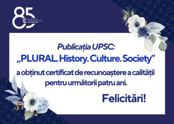 Publicația UPSC „PLURAL. History. Culture. Society”: urmare a evaluării de către ANACEC, a obținut certificat de recunoaștere a revistei în calitate de publicație științifică de profil. Cu această ocazie, comunitatatea academică a UPSC, cu mândrie și prețuire, felicită membrii colegiului de redacție al Revistei, dorindu-le multă inspirație, perseverență, persuasiune și […]
