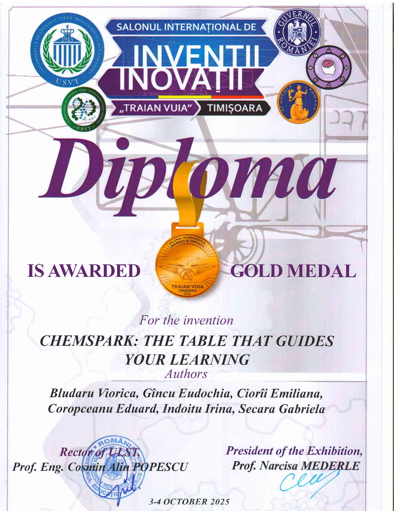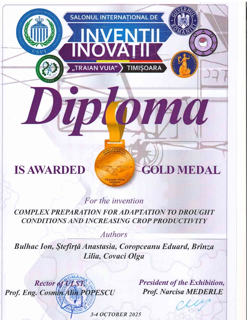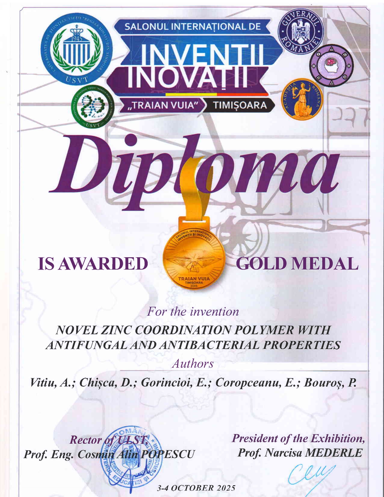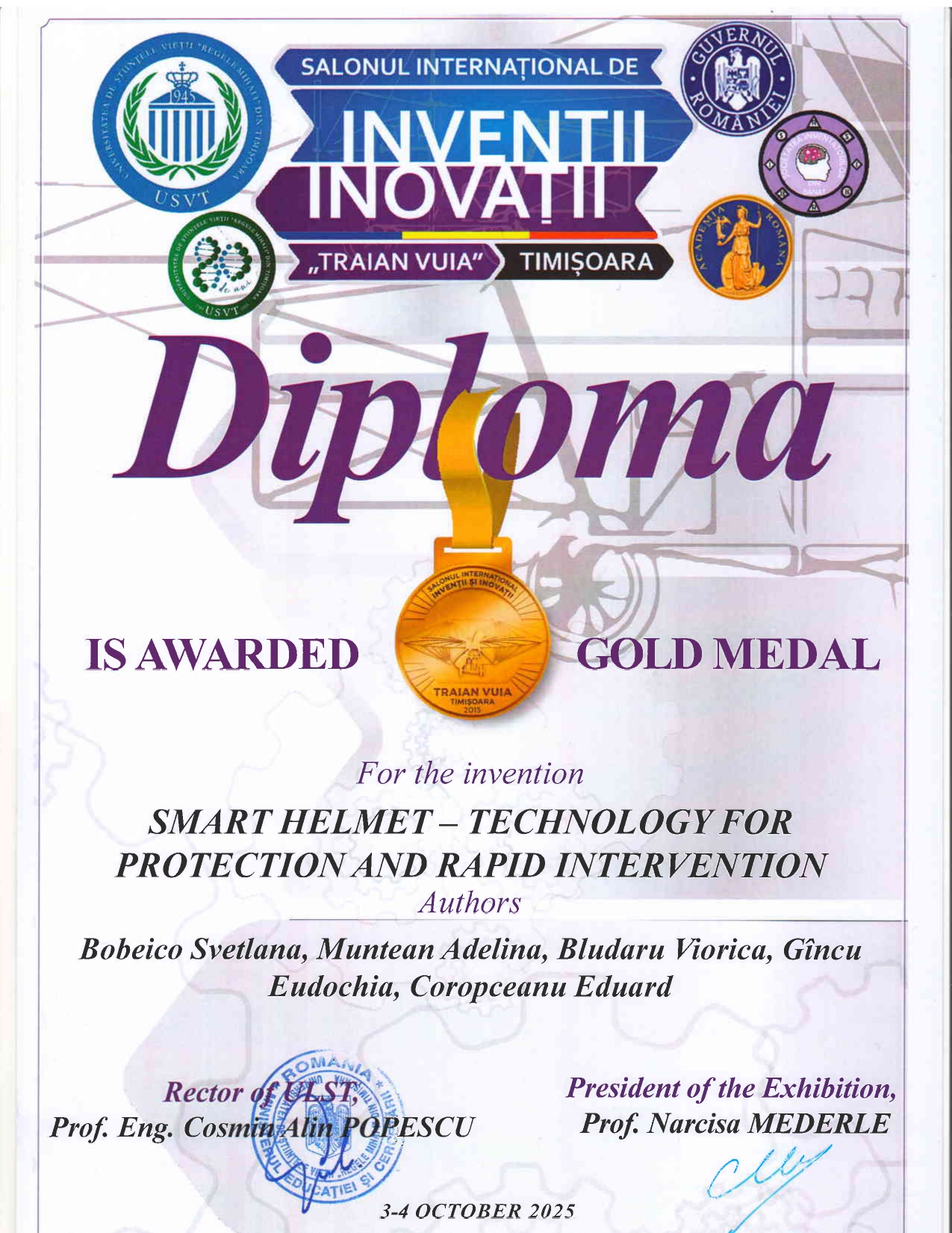 Salonul Internațional de Inventică și Inovație „Traian Vuia” s-a desfășurat în perioada 3 – 4 octombrie 2025, la Timișoara, România. Lucrările prezentate în baza celor 4 brevete de invenție au fost apreciate cu medalii de aur: