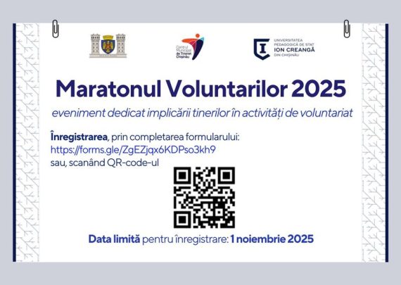 Centrul Municipal de Tineret Chișinău invită studenții UPSC la un eveniment dedicat implicării tinerilor în activități de voluntariat – Maratonul Voluntarilor 2025. Evenimentul reprezintă o oportunitate valoroasă pentru elevi și studenți de a aduce o contribuție pozitivă comunității, printr-o activitate de voluntariat pe care o vor desfășura și împărtăși pe […]