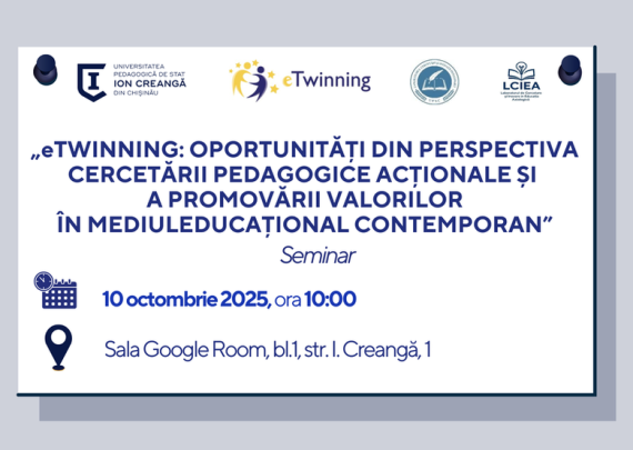 LABORATORUL CERCETĂRI ȘI INOVAȚII PEDAGOGICE și LABORATORUL DE CERCETARE ȘI INOVARE ÎN EDUCAȚIA AXIOLOGICĂ organizează semianrul „Etwinning: oportunități din perspectiva cercetării pedagogice acționale și apromovării valorilor în mediul educațional contemporan”. Evenimentul se va desfășura în data de 10 octombrie 2025, ora 10:00, în sala Google Room, bl. 1, str. I. […]