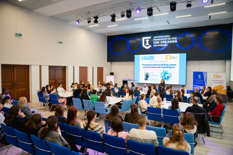 Facultatea de Științe ale Educației, în parteneriat cu Centrul Internațional „La Strada”, a organizat astăzi, 7 octombrie 2025, seminarul de informare cu genericul „Prevenirea traficului de ființe umane și promovarea unei migrații sigure”. Evenimentul, desfășurat cu succes, a reunit studenți de la mai multe facultăți, dornici să-și aprofundeze cunoștințele esențiale despre migrație, drepturi, riscuri și strategii de prevenire a exploatării.