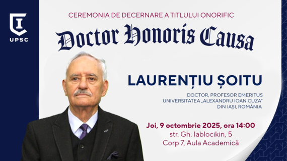 Universitatea Pedagogică de Stat „Ion Creangă” din Chișinău are onoarea de a vă invita la ceremonia de decernare a titlului onorific DOCTOR HONORIS CAUSA profesorului universitar, doctorului Laurențiu ȘOITU, Universitatea „Alexandru Ioan Cuza” din Iași, România. Ceremonia va avea loc joi, 9 octombrie 2025, începând cu ora 14:00, la UPSC, corpul […]
