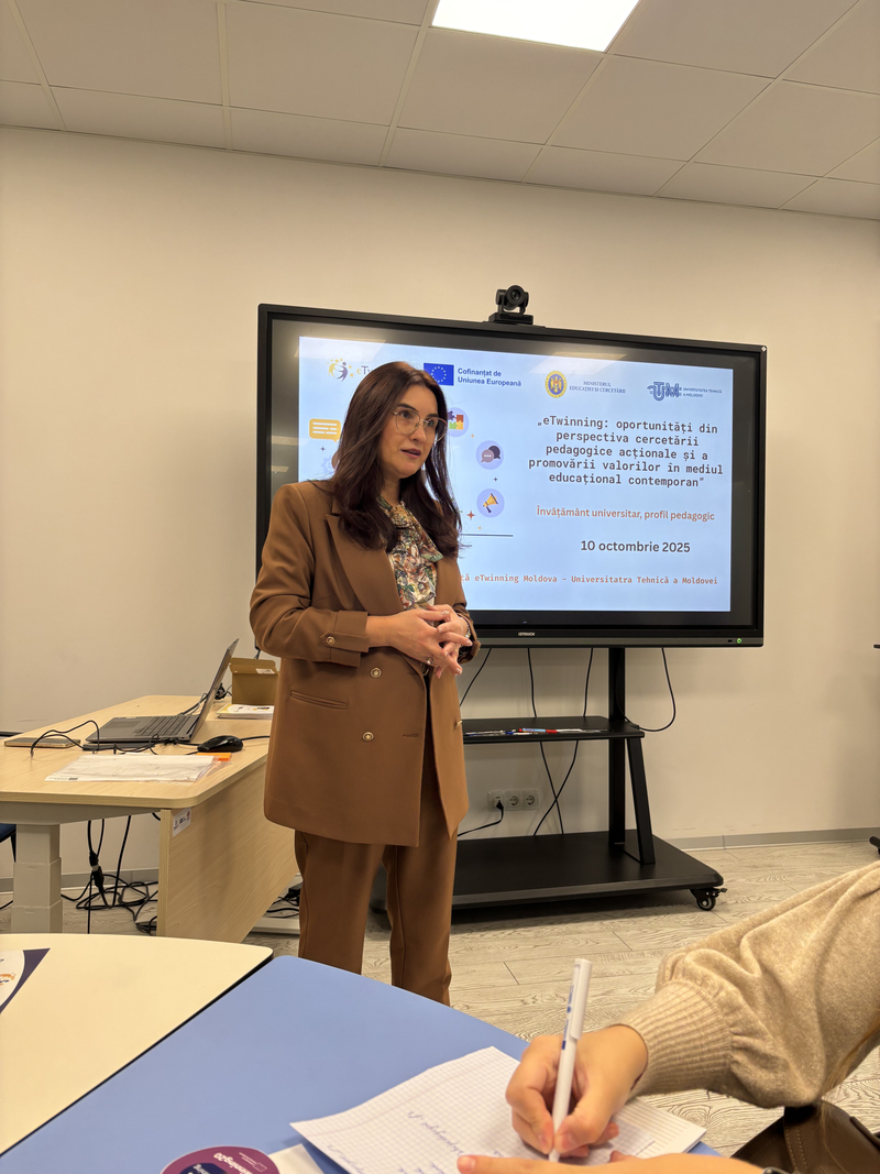 Pe 10 octombrie 2025, Universitatea Pedagogică de Stat „Ion Creangă” (UPSC) a găzduit seminarul dedicat temei eTwinning: oportunități din perspectiva cercetării pedagogice acționale și promovării valorilor în educația contemporană. Evenimentul a fost organizat în colaborare cu Universitatea Tehnică a Moldovei, în calitatea sa de Birou Național de Asistență eTwinning pentru Moldova, având ca scop aprofundarea înțelegerii conceptului de eTwinning și explorarea rolului acestuia în dezvoltarea colaborării educaționale la nivel european. În cadrul seminarului, s-a pus un accent deosebit pe cercetarea pedagogică acțională ca direcție inovatoare pentru îmbunătățirea procesului didactic. S-a discutat despre legăturile dintre acest tip de cercetare și programul eTwinning, ca resurse esențiale pentru dezvoltarea profesională continuă și stimularea reflecției critice asupra practicii educaționale.