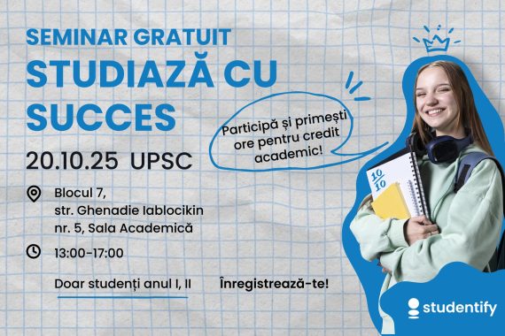 Te simți uneori obosit chiar dacă n-ai făcut mare lucru? Sau, dimpotrivă, studiezi ore în șir, dar rezultatele nu mai cresc? Adevărata performanță nu înseamnă doar efort, ci echilibru. La seminarul „Studiază cu succes” vei descoperi cum să-ți păstrezi concentrarea, energia și motivația pe termen lung fără să ajungi la […]