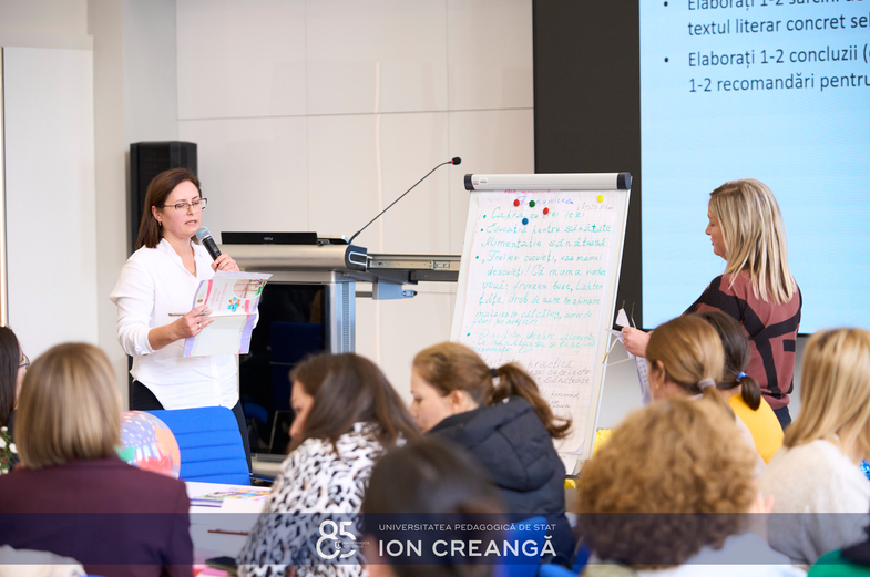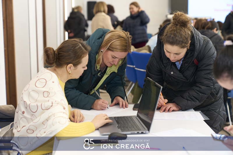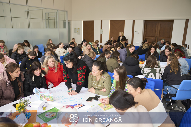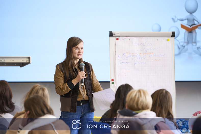 Sesiunea a continuat cu partea practică, intitulată „Dezvoltarea holistică a preșcolarilor prin creații literare”. Participanții au fost implicați activ în lucrul pe echipe, având sarcina de a realiza un algoritm propus, menit să aplice principiile teoretice în contexte educaționale concrete.