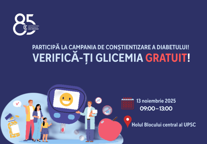 Universitatea Pedagogică de Stat „Ion Creangă” din Chișinău marchează Ziua Internațională a Diabetului printr-o campanie de conștientizare a diabetului. În cadrul inițiativei, toți studenții, cadrele didactice și personalul universității sunt invitați să își testeze gratuit glicemia, joi, 13 noiembrie 2025, între orele 09:00 și 13:00, în holul Blocului Central.