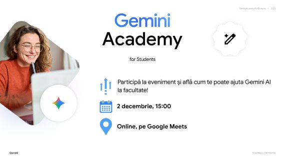Google și Fundația Leaders îți prezintă: Gemini Academy for Students! Cum te poate ajuta Gemini AI în viața de student? Dar pentru a te pregăti mai bine pentru viața profesională? Participă gratuit la Gemini Academy for Students și vei descoperi concret: Când: Marți, 2 decembrie 2025, ora 15:00 Unde: Online, […]