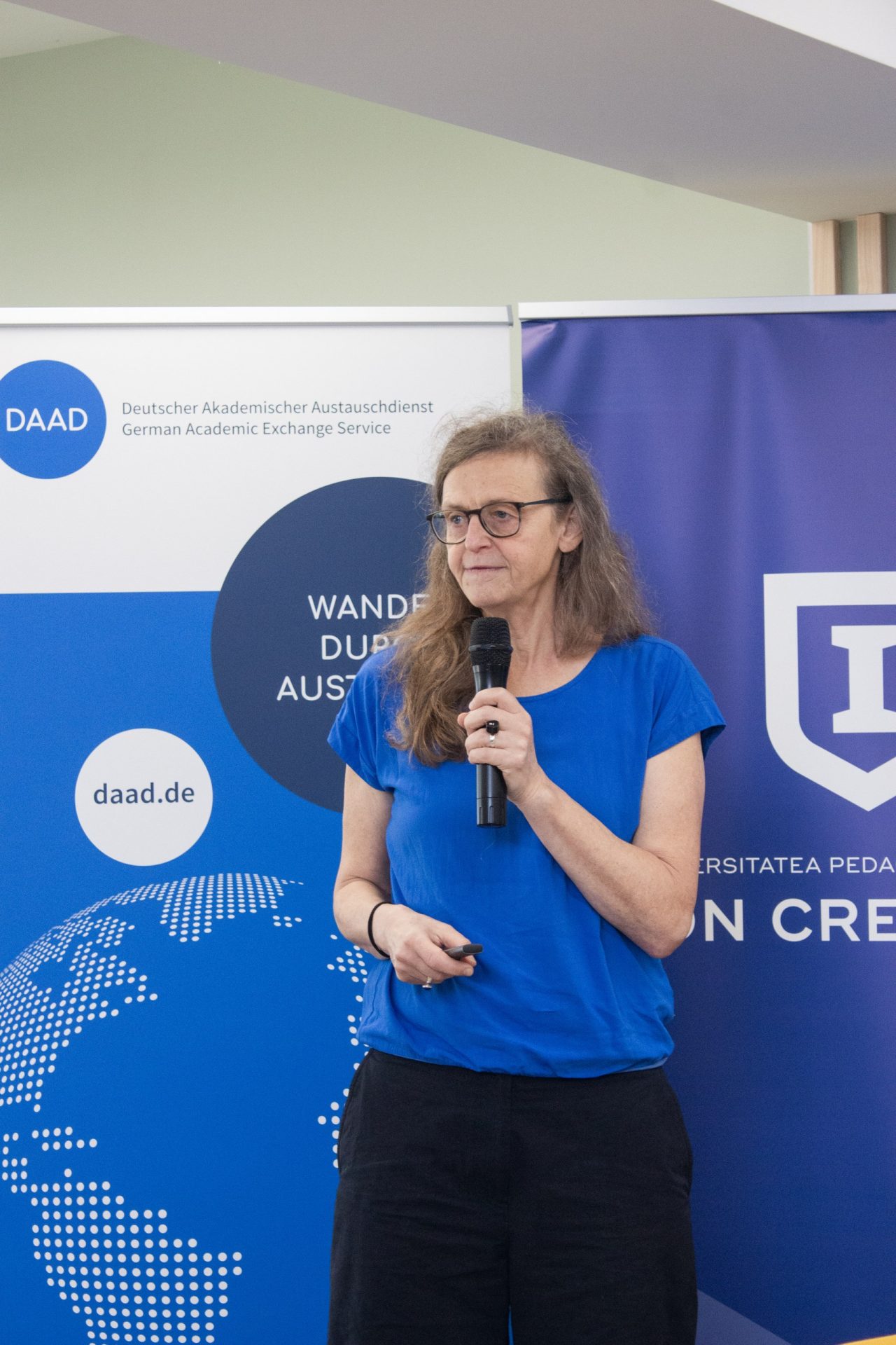 Participanții au fost salutați în deschidere de conf. univ. dr. Lucia Cepraga, prorector al UPSC, de Magdalena Poirier, șefa Secției de Cultură a Ambasadei Germaniei la Chișinău, precum și de Susanne Becker, directoarea Departamentului de Limba Germană al Goethe-Institut București.