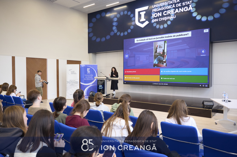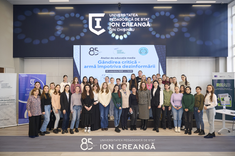 Facultatea de Științe ale Educației, UPSC și Facultatea de Filologie și Istorie din cadrul Universității Pedagogice de Stat „Ion Creangă” din Chișinău, în parteneriat cu Centrul pentru Jurnalism Independent Moldova și Facultatea Transfrontalieră UDJG a Universității „Dunărea de Jos” din Galați (UDJG) au desfășurat astăzi, 25 noiembrie 2025, atelierul de educație media cu genericul „Gândirea critică – armă împotriva dezinformării”.