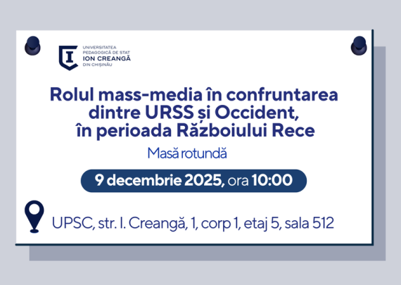 Vă invităm la Masa rotundă „Rolul mass-media în confruntarea dintre URSS și Occident în perioada Războiului Rece”, care va avea loc în incinta Facultății de Filologie și Istorie a UPS „Ion Creangă” din Chișinău pe data de 9 decembrie 2025, începând cu orele 10:00. Prin intermediul acestui eveniment ne propunem […]