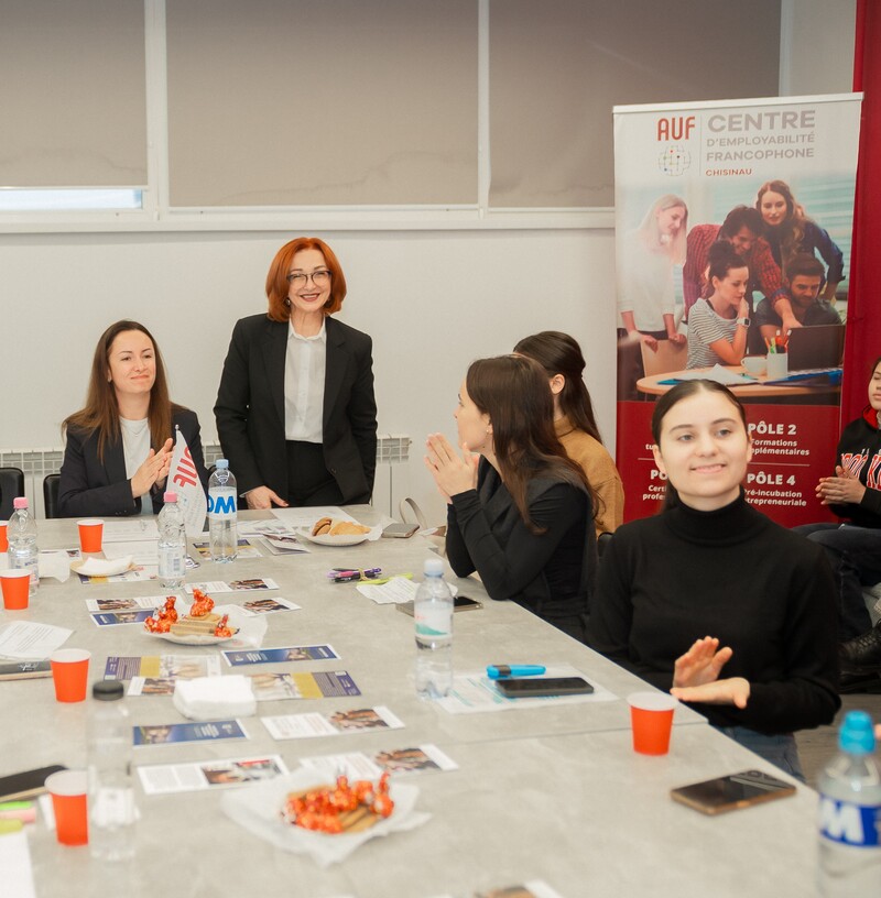 Președinta juriului, doamna Claudia VIȘAN, Directoarea Biroului Național AUF-Moldova, a salutat inițiativa Centrului de Angajabilitate Francofon, subliniind importanța formării studenților în spiritul culturii antreprenoriale și al competențelor transversale necesare pe piața muncii globale.