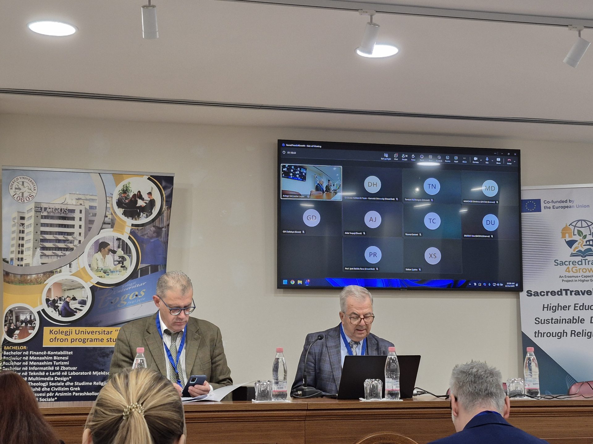 Evenimentul a debutat cu o sesiune oficială de deschidere, susținută de Prof. dr. Ilia Ninka, Rector al Colegiului Universitar LOGOS, și de dl. Dimitrios Moschos, Offițer de Proiect în cadrul EACEA. Agenda a inclus prezentarea obiectivelor proiectului SacredTravels4Growth, precum și intervențiile reprezentanților universităților partenere din Europa, Balcanii de Vest, Vecinătatea Estică, Asia și Africa Subsahariană.