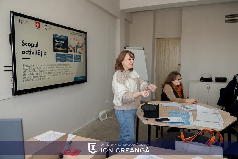 Evenimentul a fost facilitat de VERDEȘ Tatiana, dr., conf. univ., expert REFLECT, și LAȘCU Tatiana, dr., conf. univ., care au ghidat participanții printr-un demers reflexiv și colaborativ, centrat pe schimbul de experiență și învățarea de la egal la egal.