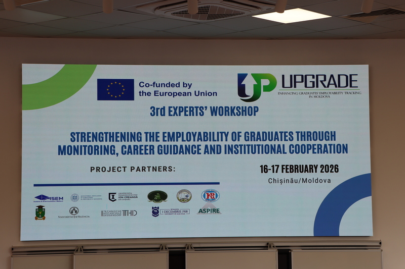 În perioada 16 – 18 februarie 2026, s-a desfășurat al III-lea Workshop al Experților din cadrul proiectului UPGRADE ( Enhancing Graduates’ Employability Tracking in Moldova, număr de referință 101129166), finanțat de către Uniunea Europeană, în cadrul programului ERASMUS+ , cu genericul CONSOLIDAREA CAPACITĂȚII DE ANGAJABILITATE A ABSOLVENȚILOR PRIN MONITORIZARE, ORIENTARE ÎN CARIERĂ ȘI COOPERARE INSTITUȚIONALĂ.