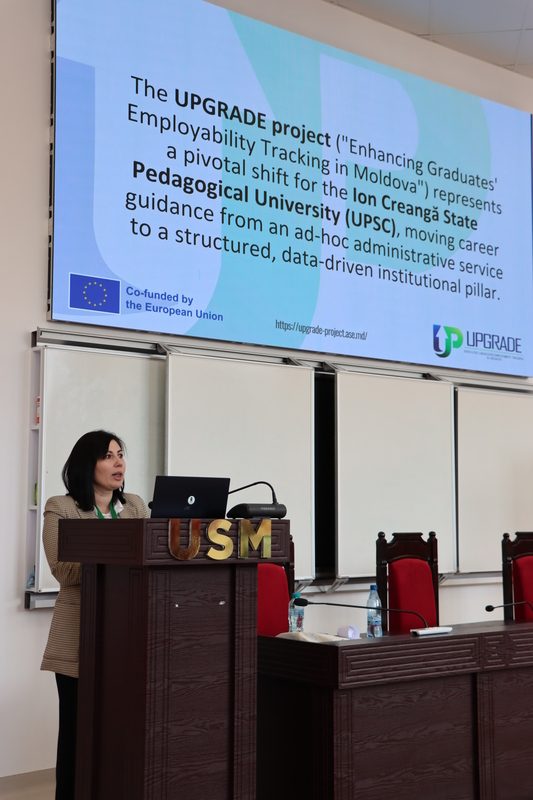 În cadrul lucrărilor workshopului, participanții au fost salutați de către rectorul USM, dl conf. dr. Igor Șarov, dna Adriana Cazacu, secretar de stat, Ministerul Educației și Cercetării și dna Olesea Sîrbu, coordonator programului UPGRADE. Sesiunea de lucru a continuat cu intervenții tematice dedicate monitorizării angajabilității absolvenților în învățământul superior și dezvoltării unor politici fundamentate pe date și evidență; precum și consolidării bazei normative a centrelor de ghidare în carieră prin sprijinul proiectului UPGRADE susținute de către reprezentanți ai MEC.