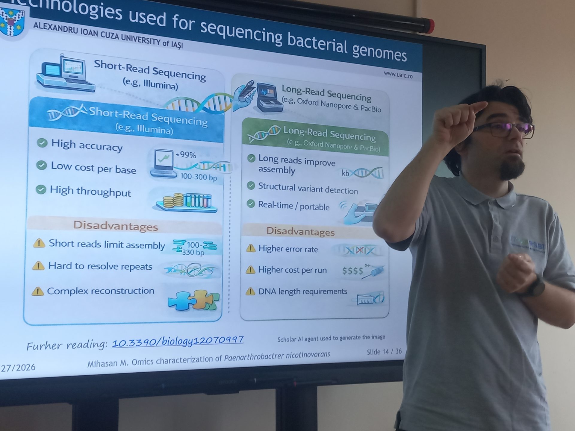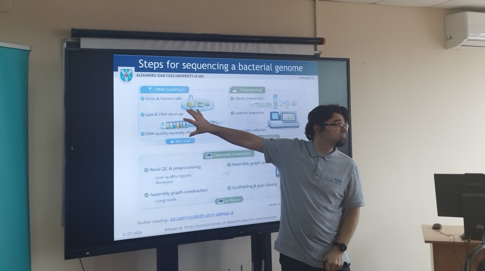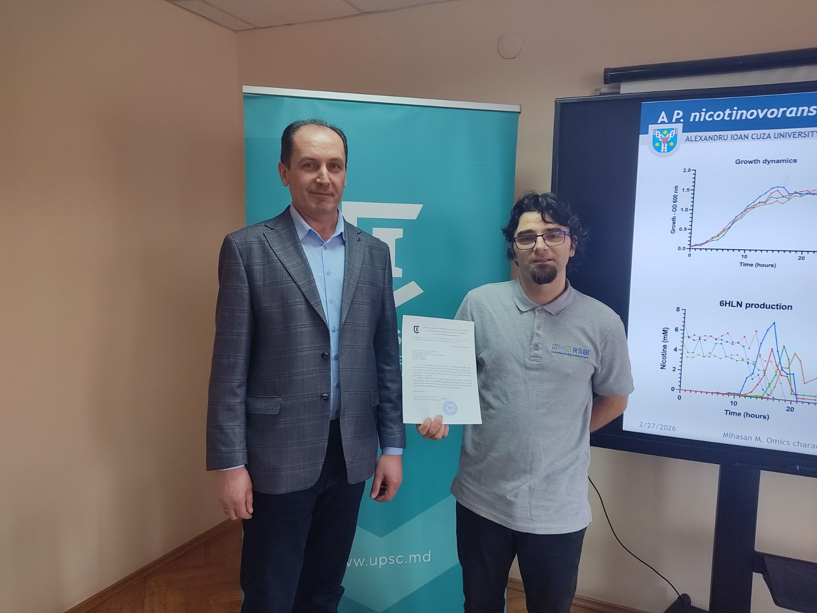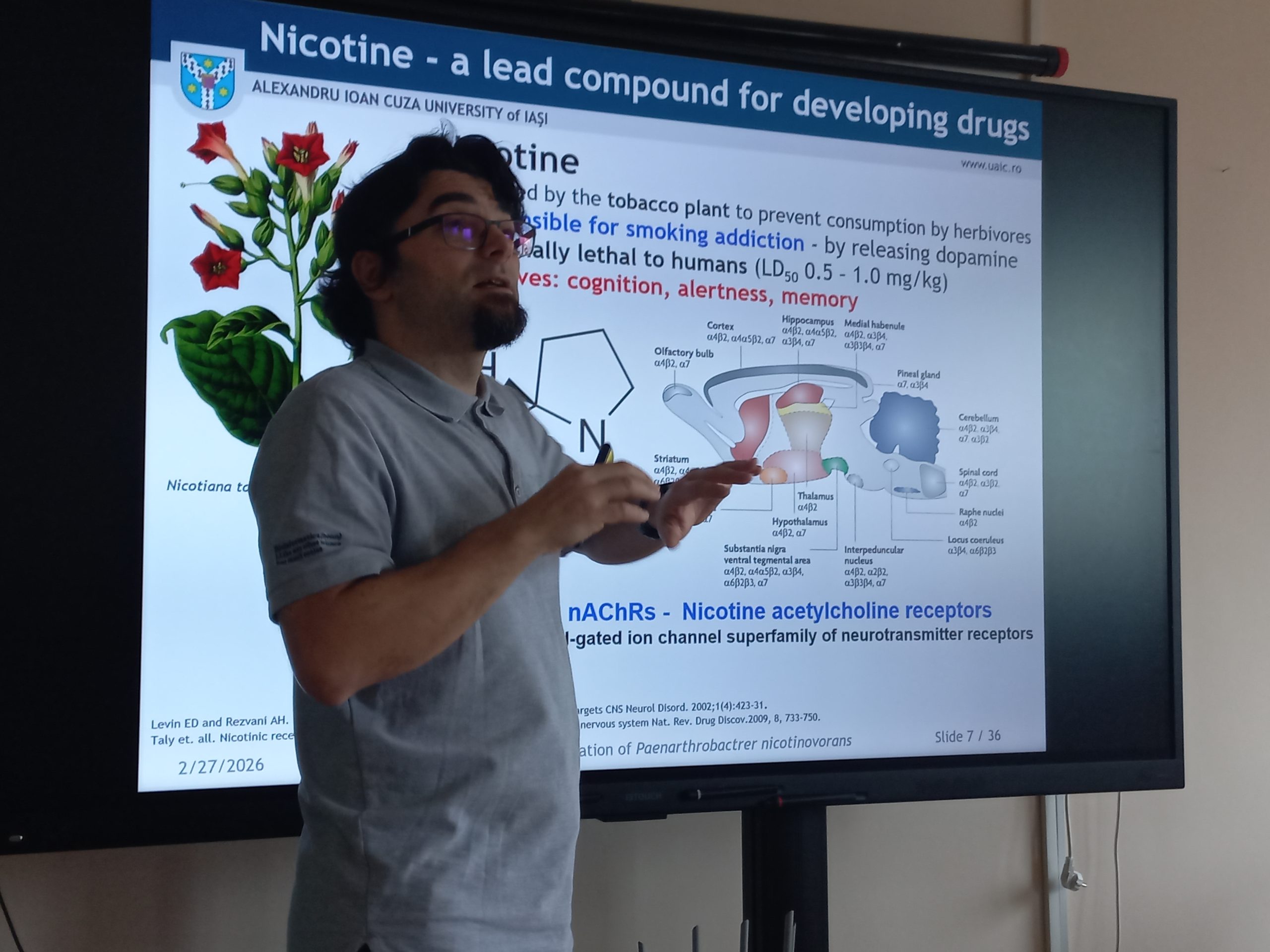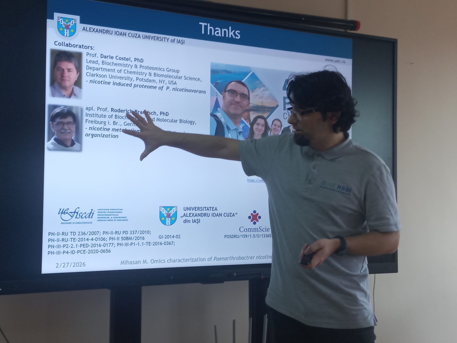 Ora publică: „O perspectivă nouă asupra bacteriei Paenarthrobacter nicotinovorans”, invitatul special, Prof. Dr. Habil. Marius I. MIHĂȘAN, reprezentant al Grupului de Cercetare BioActive din cadrul Universității „Alexandru Ioan Cuza” din Iași (UAIC), a susținut prelegerea intitulată: „De la deșeuri cu nicotină la compuși chimici utili: utilitatea bacteriei Paenarthrobacter nicotinovorans”.