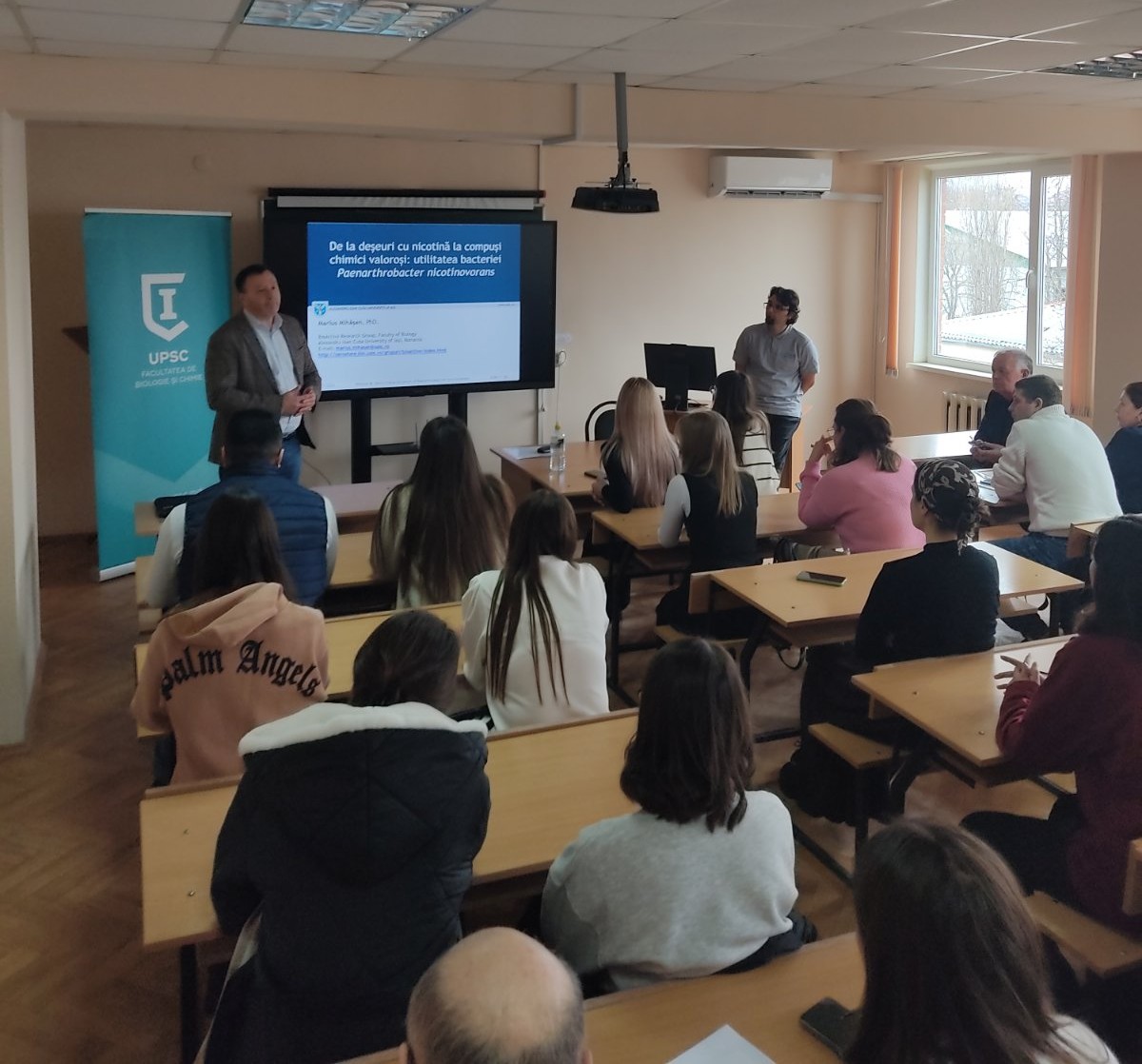 Prezentarea a captat atenția studenților și a cadrelor didactice, oferind o viziune fascinantă asupra modului în care biotehnologia poate transforma deșeurile nocive în resurse valoroase pentru industrie și medicină.