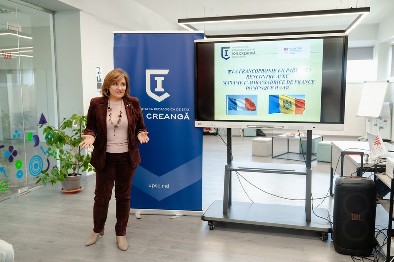 Facultatea de Limbi și Literaturi Străine, prin intermediul Catedrei de Filologie Romanică, Universitatea Pedagogică de Stat „Ion Creangă” din Chișinău, a marcat în data de 17 martie 2026, deschiderea oficială a Zilelor Francofoniei printr-un eveniment de excepție: întâlnirea studenților și a cadrelor didactice cu Excelența Sa, Dominique Waag, Ambasadoarea Franței în Republica Moldova.