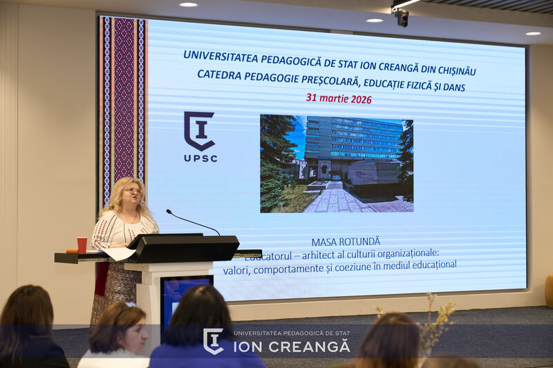 Masa rotundă cu genericul „Educatorul – arhitect al culturii organizaționale: valori, comportamente și coeziune în mediul educațional” s-a desfășurat la data de 31 martie 2026, fiind organizată deCatedra Pedagogie Preșcolară, Educație Fizică și Dans din cadrul Facultății Științe ale Educației a Universității Pedagogice de Stat „Ion Creangă” din Chișinău.