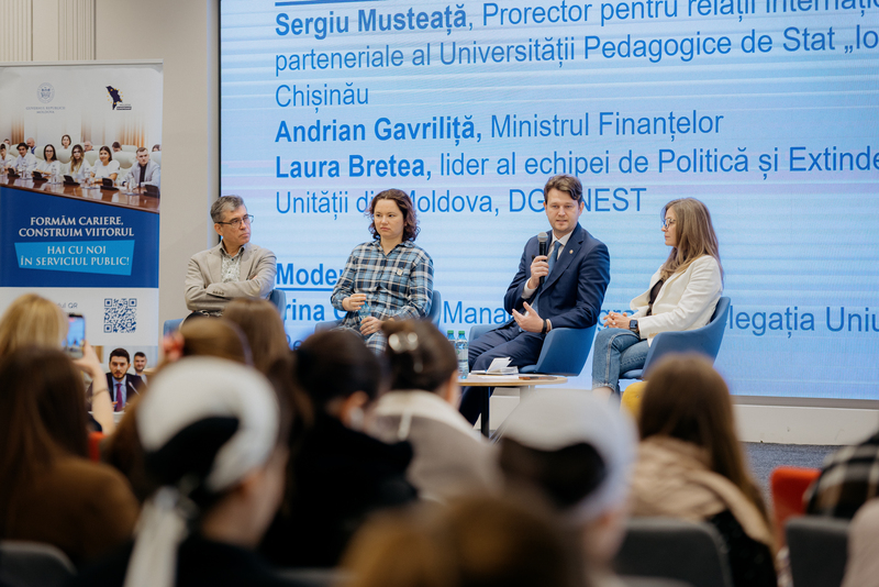 Evenimentul de lansare de astăzi a reunit personalități de nivel înalt care cunosc din proprie experiență cum arată o carieră în serviciul public. Andrian Gavrilița, Ministrul Finanțelor, și Laura Bretea, lider al echipei de Politică și Extindere din cadrul Unității din Moldova, DG ENEST, și-au împărtășit parcursurile profesionale, oferind perspective sincere și inspiraționale despre ce înseamnă să lucrezi în centrul procesului decizional.