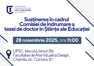 I.P. Universitatea Pedagogică de Stat “Ion Creangă” din Chișinău anunță pentru data de 25.11.2025 ora 11.00...