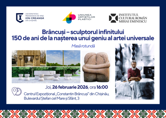 Universitatea Pedagogică de Stat „Ion Creangă” din Chișinău, în parteneriat cu Institutul Cultural Român, Uniunea Artiștilor Plastici din Republica Moldova și Centrul Expozițional „Constantin Brâncuși” din Chișinău, va desfășura masa rotundă: „Brâncuși – sculptorul infinitului. 150 de ani de la nașterea unui geniu al artei universale”, în data de 26 […]