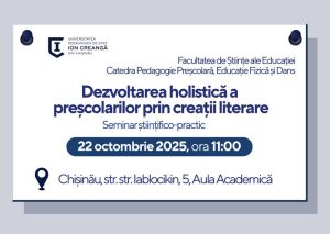 Seminarul științifico-practic „Dezvoltarea holistică a preșcolarilor prin creații literare” va fi dedicat problemelor actuale, realizărilor și perspectivelor de dezvoltare în educația preșcolară, precum și schimbului de experiență profesională privind metodele creative de stimulare a dezvoltării copiilor.