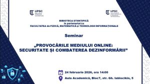 Biblioteca Științifică a Universității Pedagogice de Stat „Ion Creangă” din Chișinău, în parteneriat cu Facultatea de Fizică, Matematică și Tehnologii Informaționale, organizează seminarul „Provocările mediului online: securitate și combaterea dezinformării”, care va avea loc la data de 24 februarie 2026, în blocul 7, Aula Academică, la ora 14.00.
