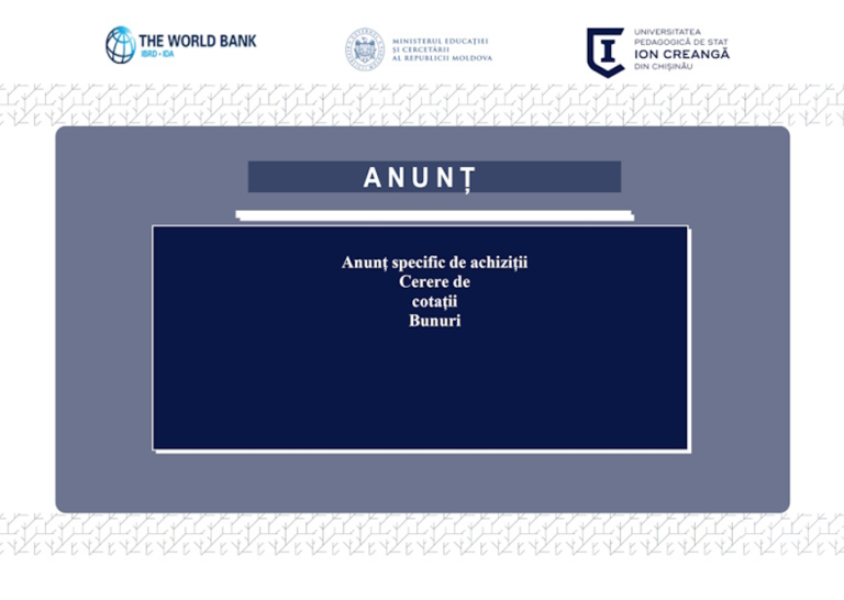 Anunț specific de achiziții Cerere de cotații – Bunuri Țara: Republica Moldova Instituția: Instituția Publică Universitatea Pedagogică de Stat „Ion […]